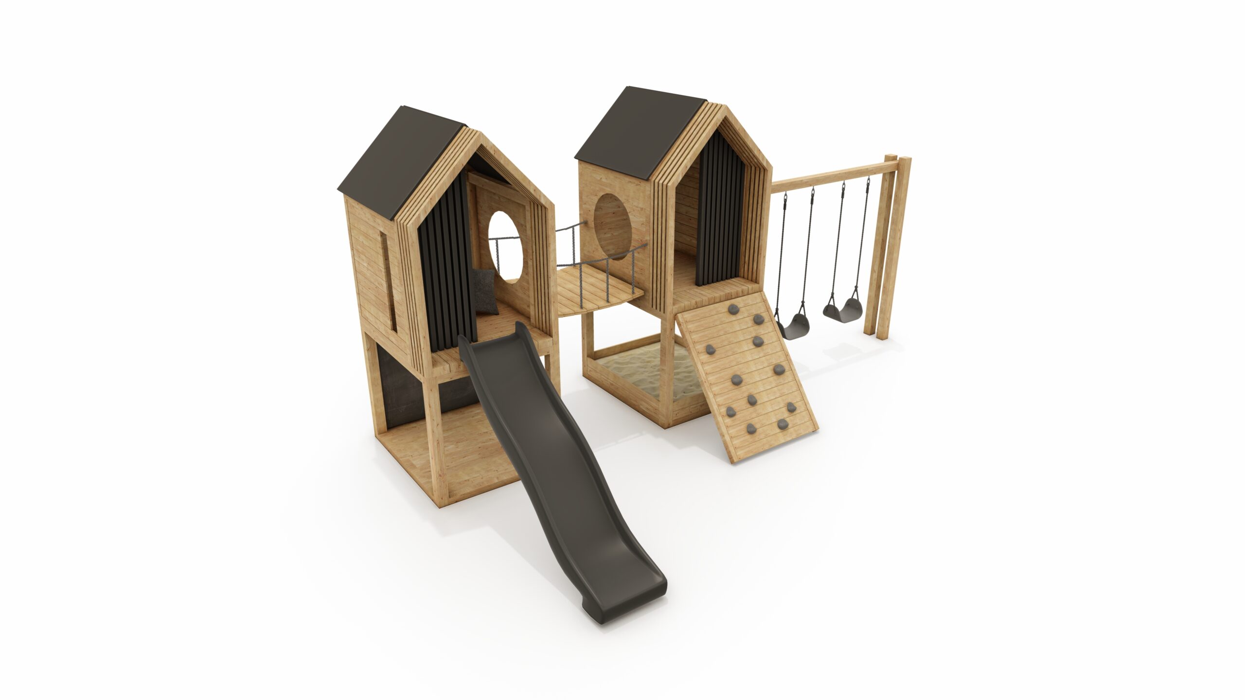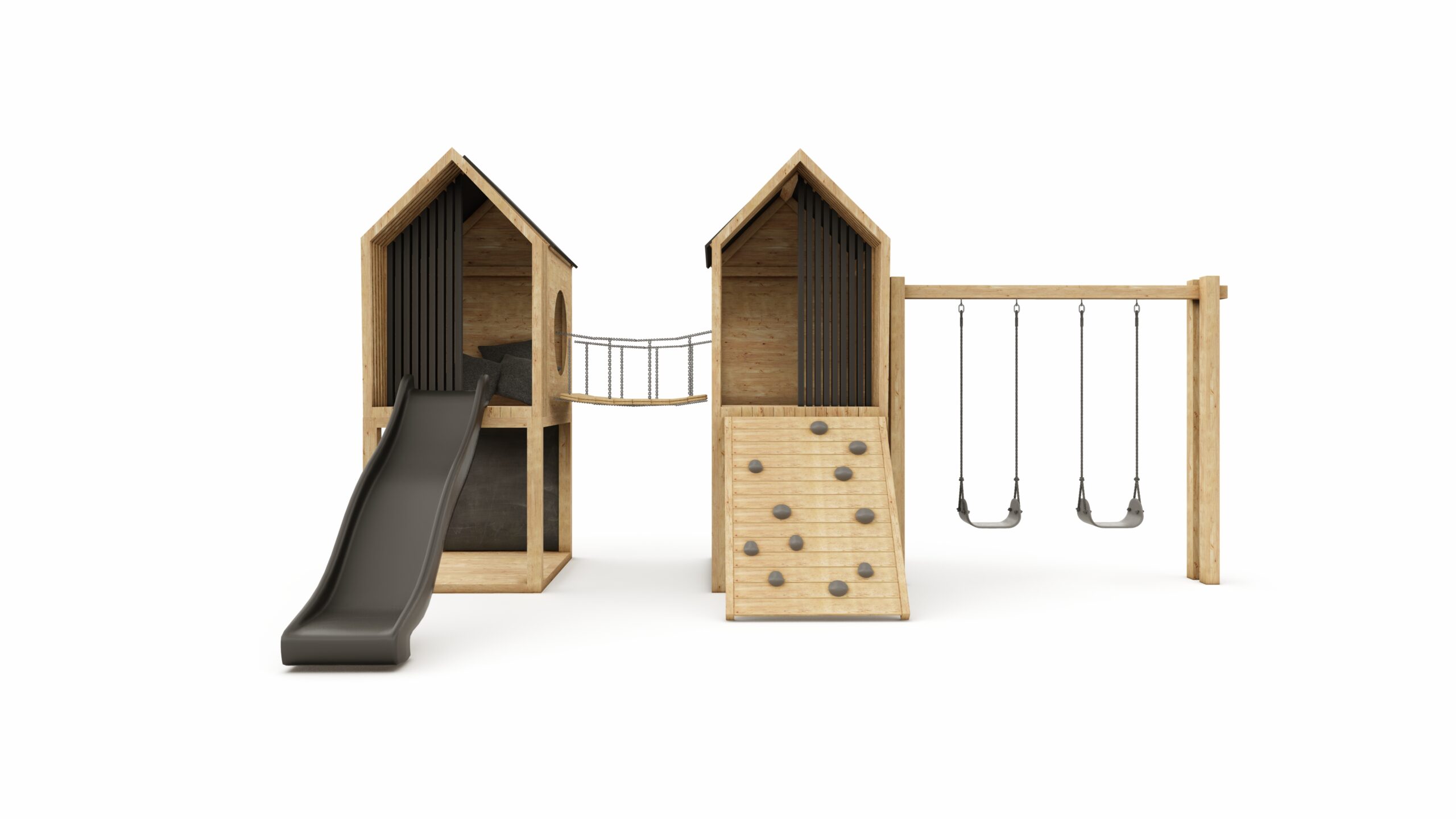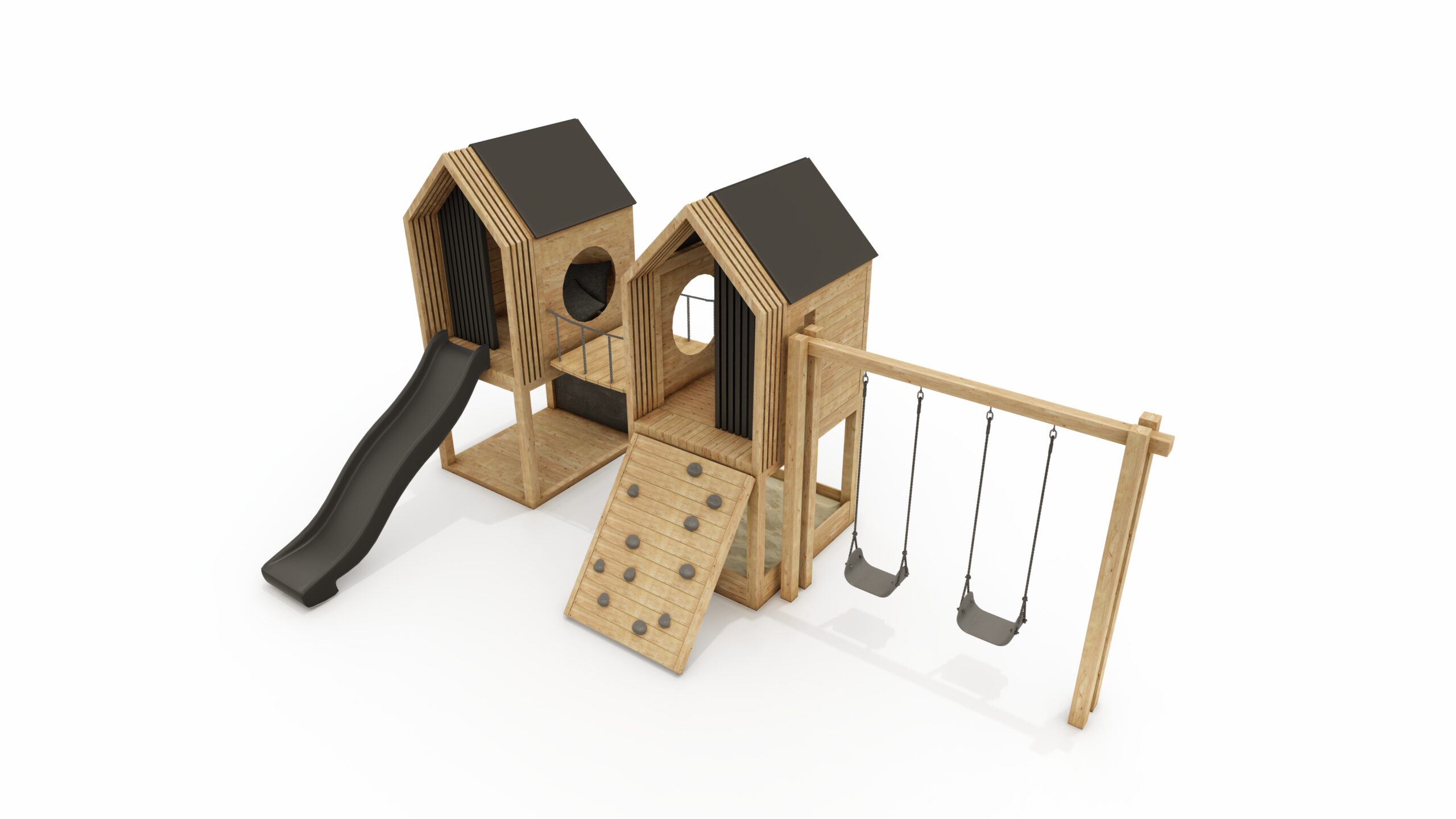 wooden structure (2x house on a platform) + swing frame