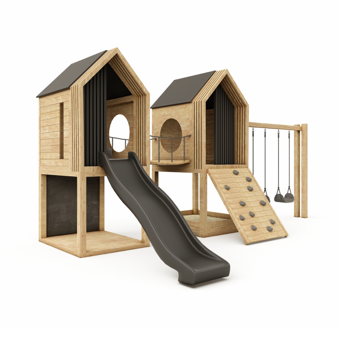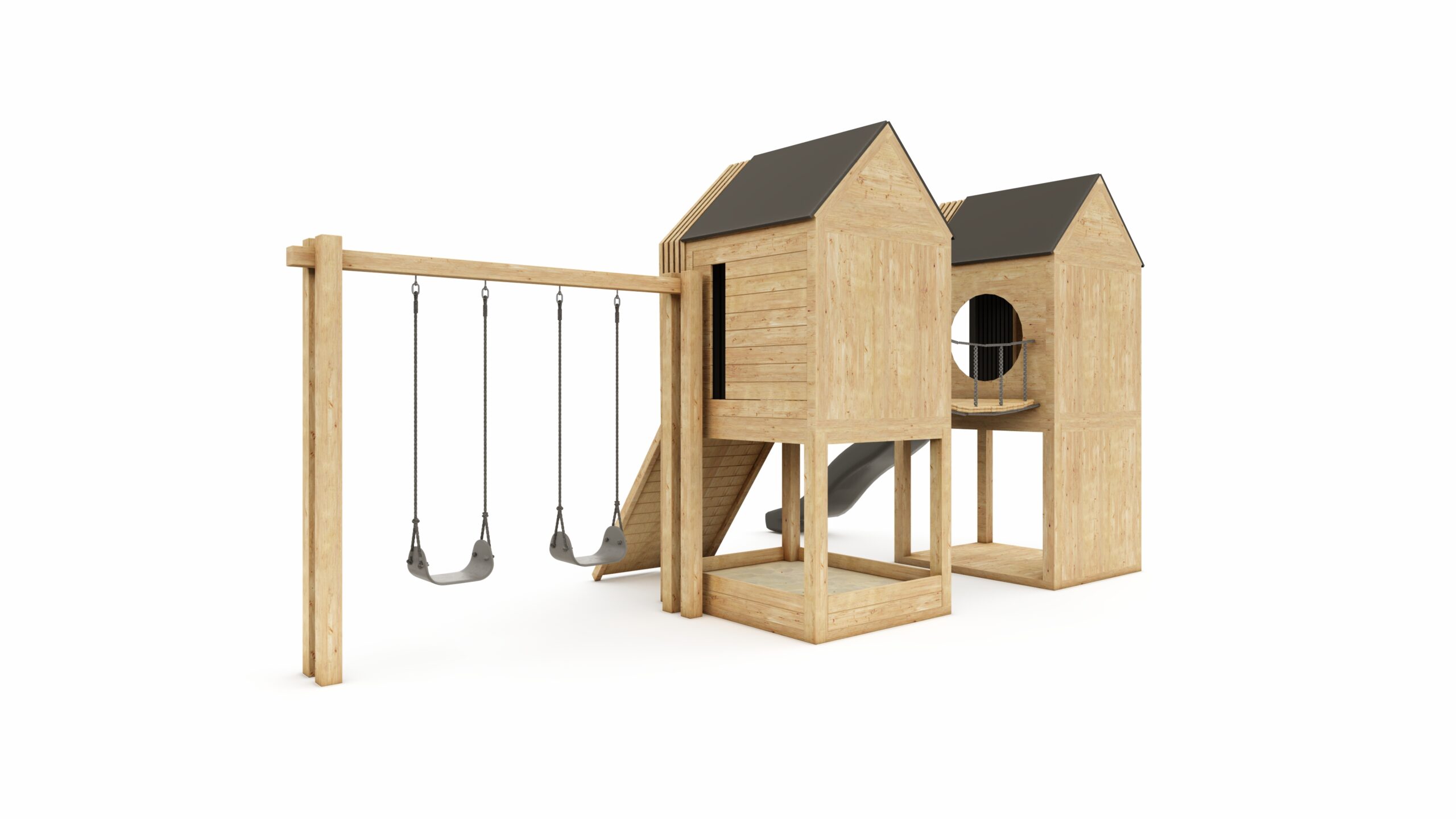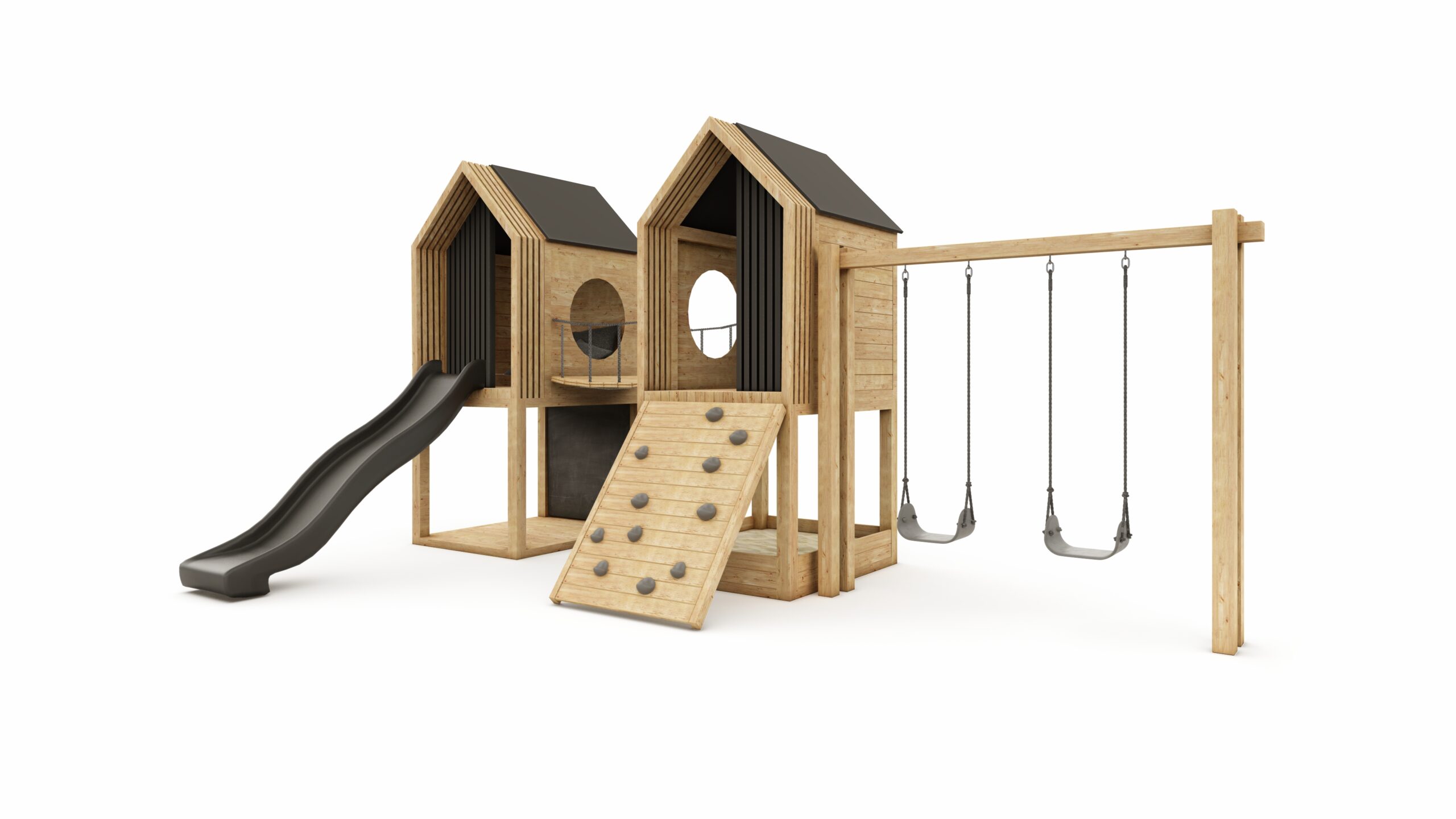 wooden structure (2x house on a platform) + swing frame