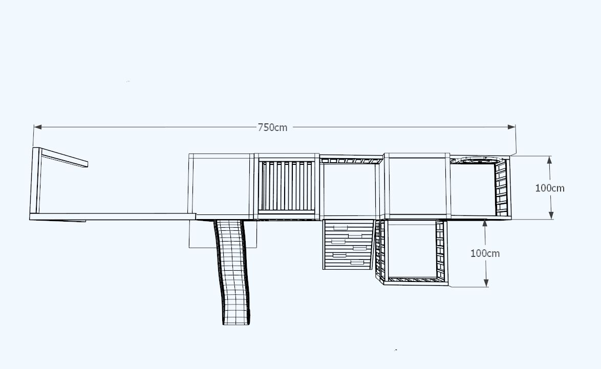 Dimensions of the set: 7.5 mx 2 m