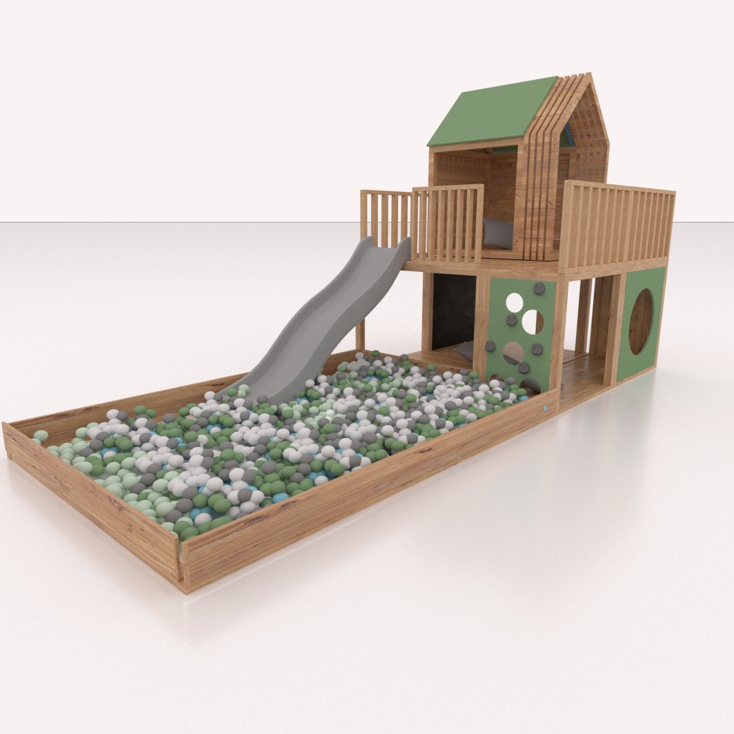 By ordering this interior set with, among others, a house, slide and ball pool, you can create such a room in a commercial space or simply in your own home! No matter where it appears, it will arouse the delight of parents and the joy of the youngest!