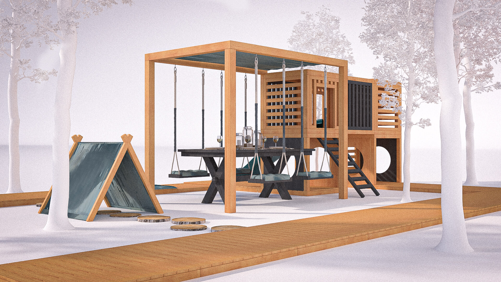 Dimensions: set: 7x6m, beams: 10x10cm, 7x7cm, board thickness: 2cm