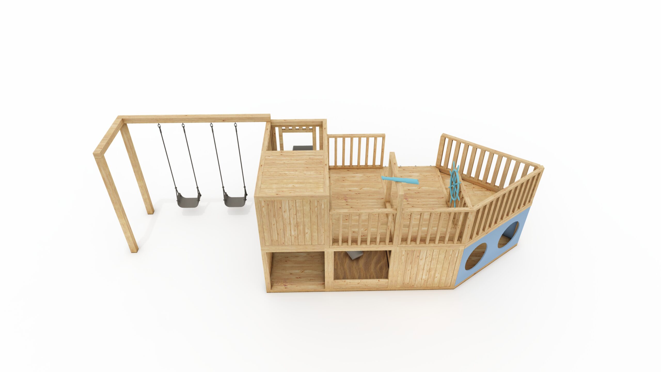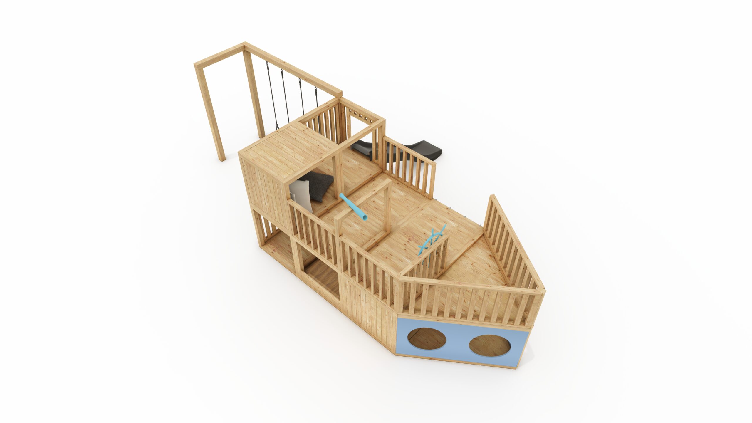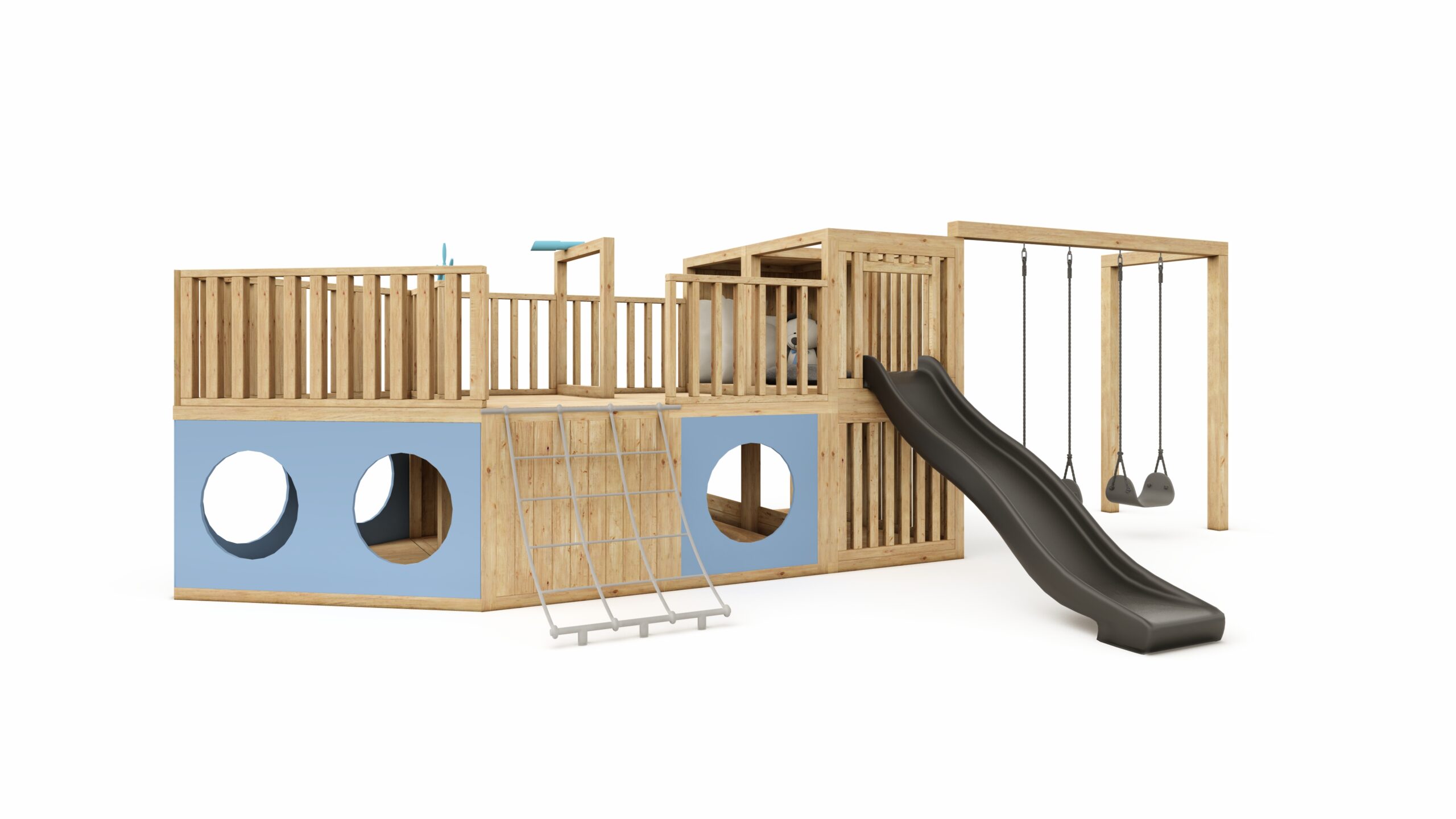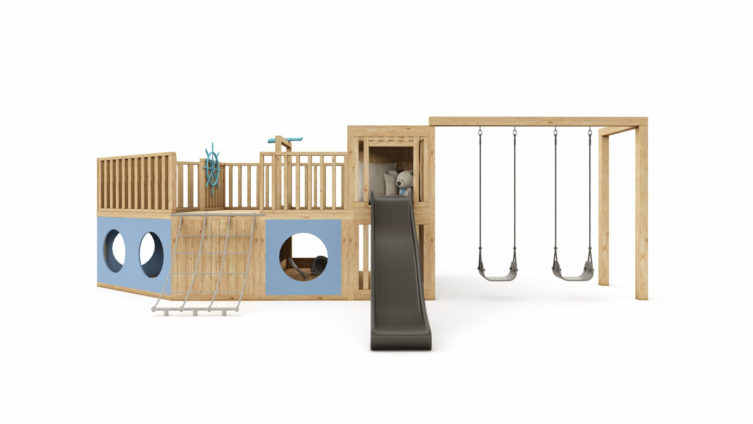 The set includes: a complete playground, with all accessories except for a table with chairs and cushions