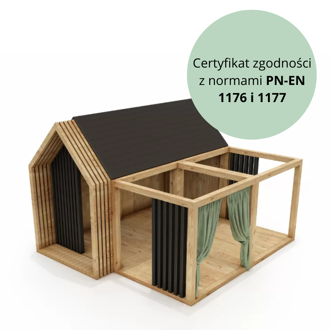 Wymiary: zestawu 240 x 270 cm, kantówki: 7×7 cm, 4×6 cm, grubość deski: 2,2/2,7 cm