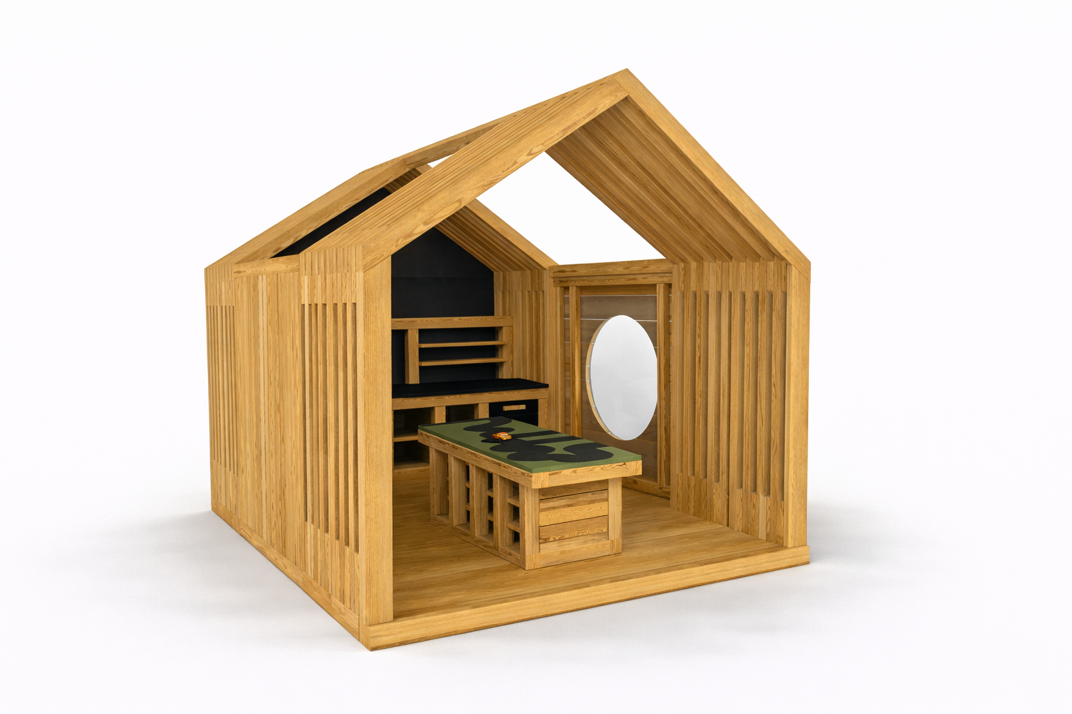 Naturalne drewno i minimalistyczna forma – piękno w prostocie, które pasuje zarówno do ogrodu, jak i do wnętrz przedszkoli, klubów dziecięcych czy stref kreatywności.
