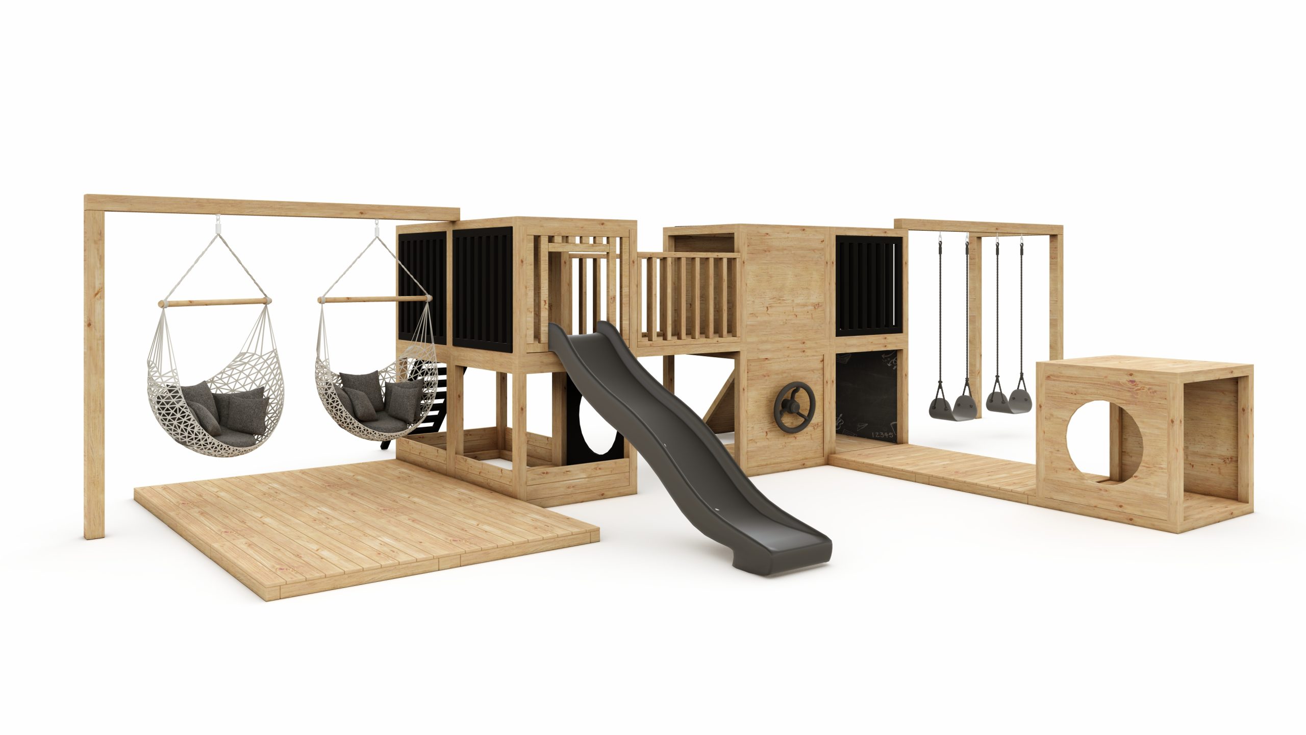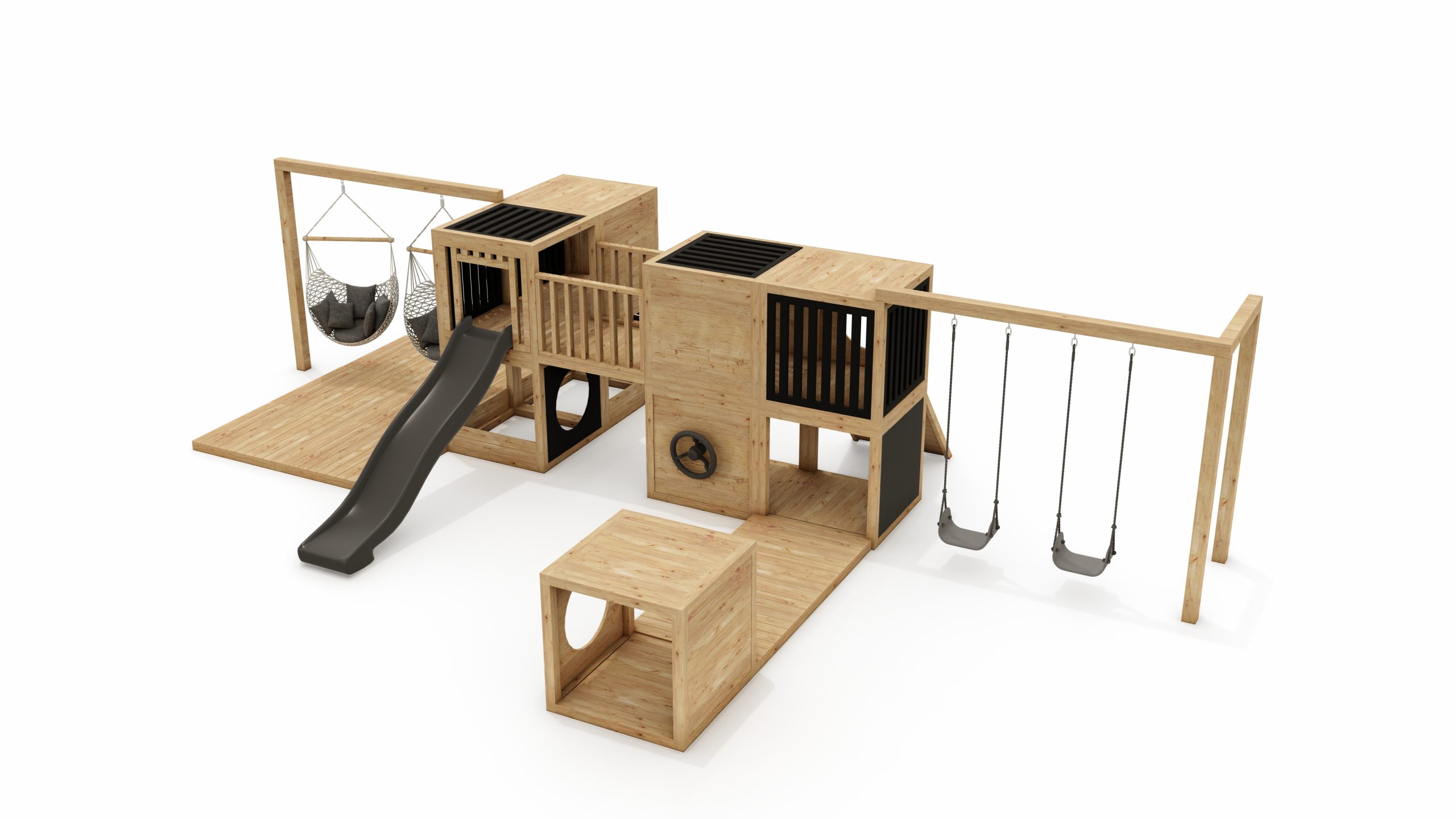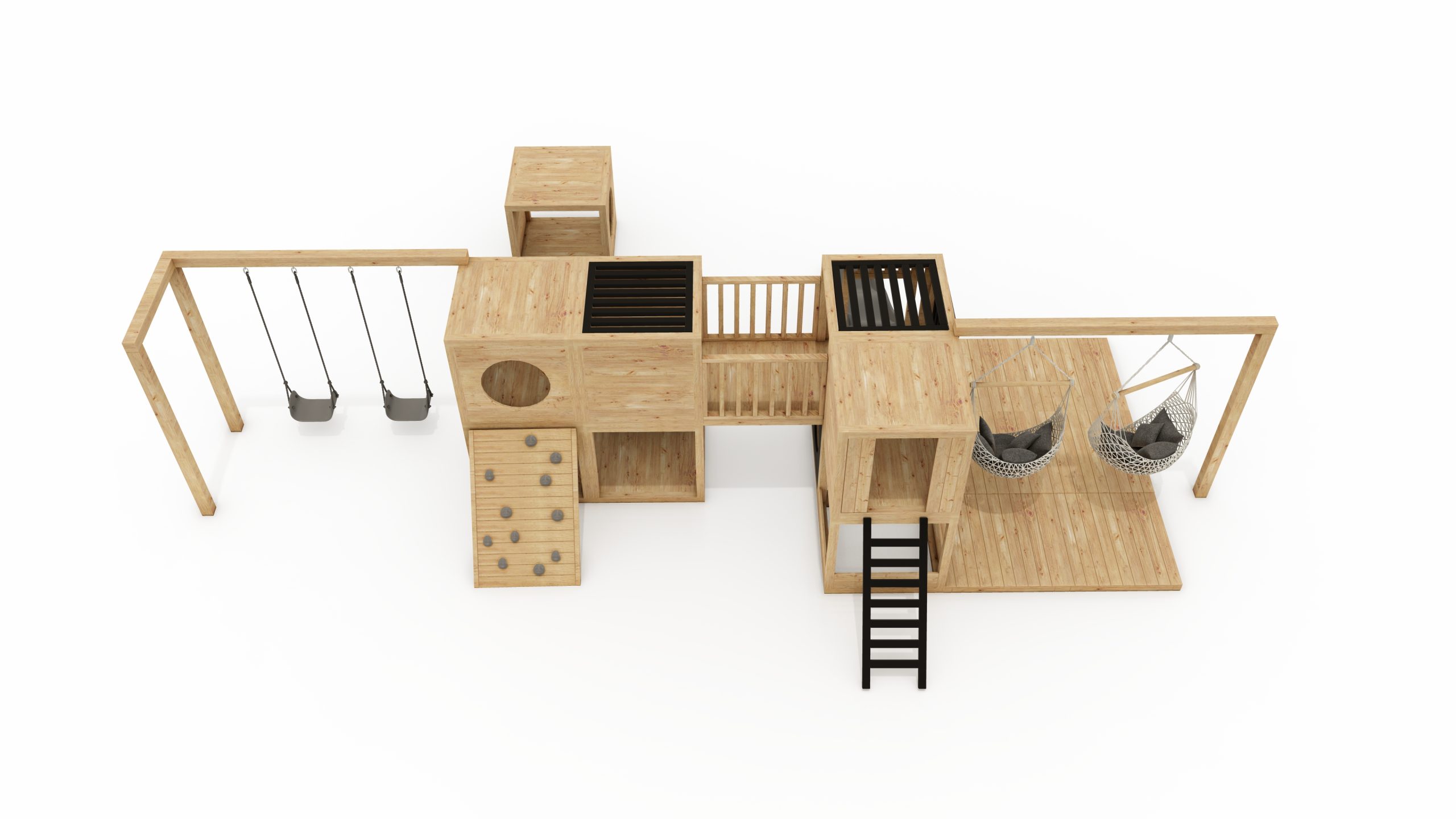 W skład zestawu nie wchodzą: huśtawki, ślizg, kamienie na ściance wspinaczkowej, kierownica, luneta