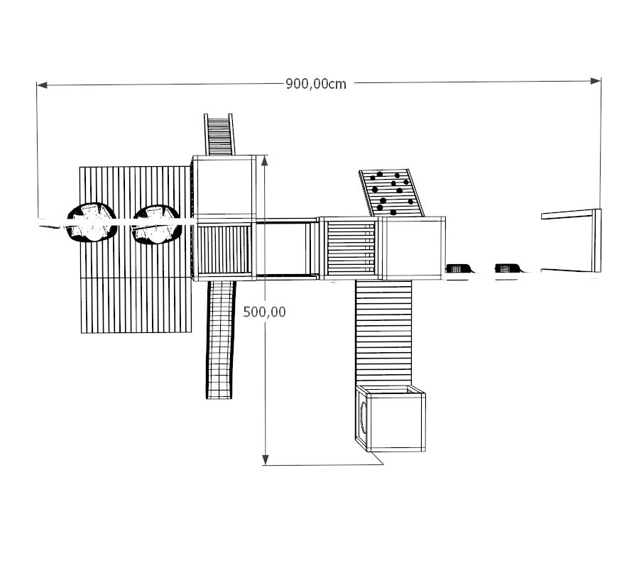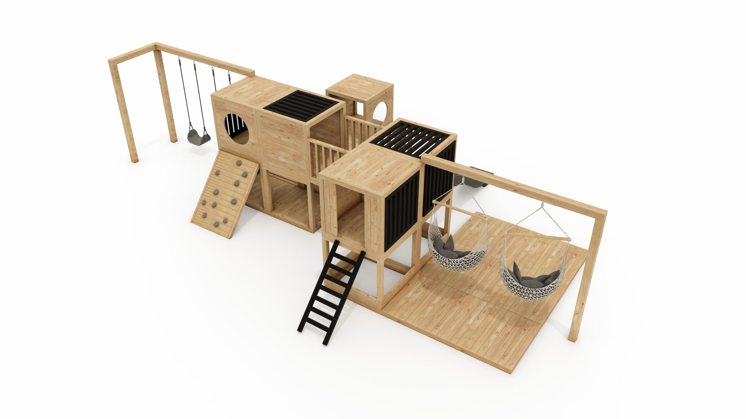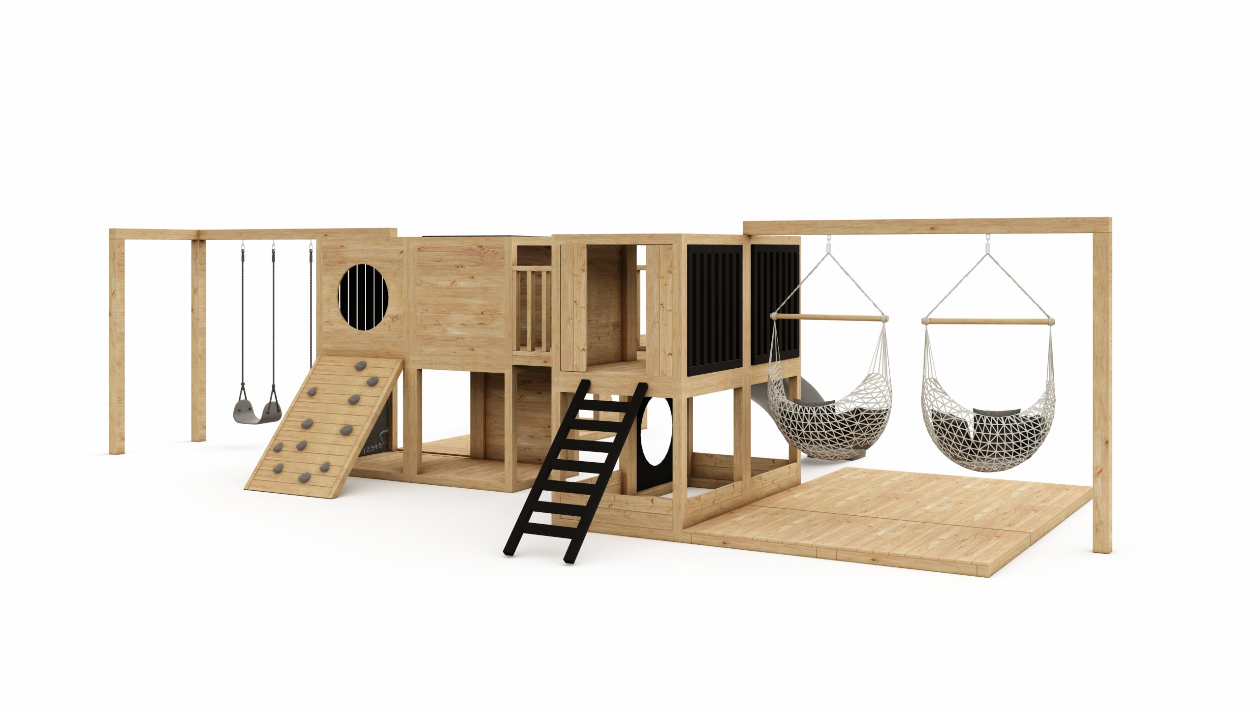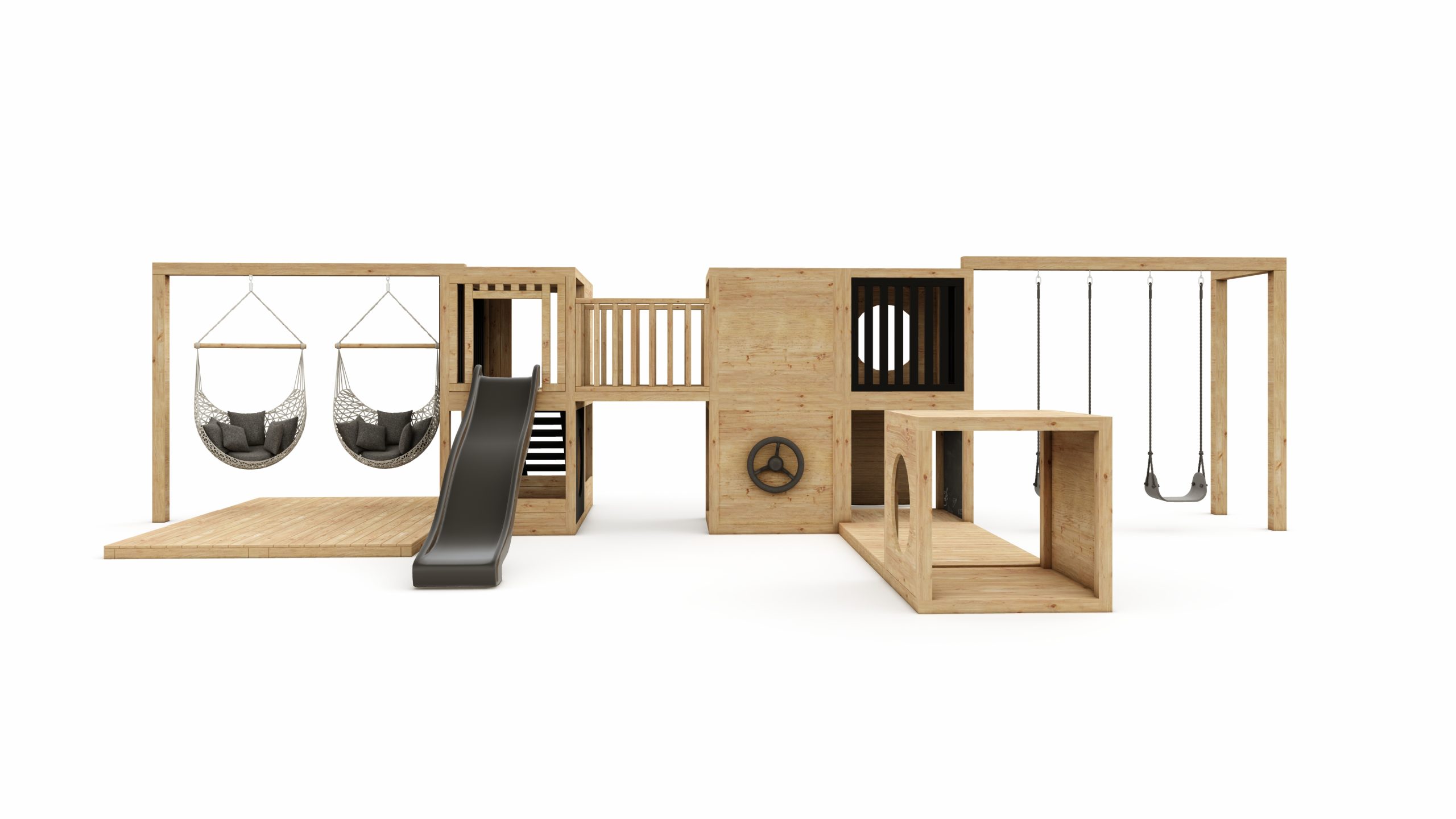 W skład zestawu nie wchodzą: huśtawki, ślizg, kamienie na ściance wspinaczkowej, kierownica, luneta