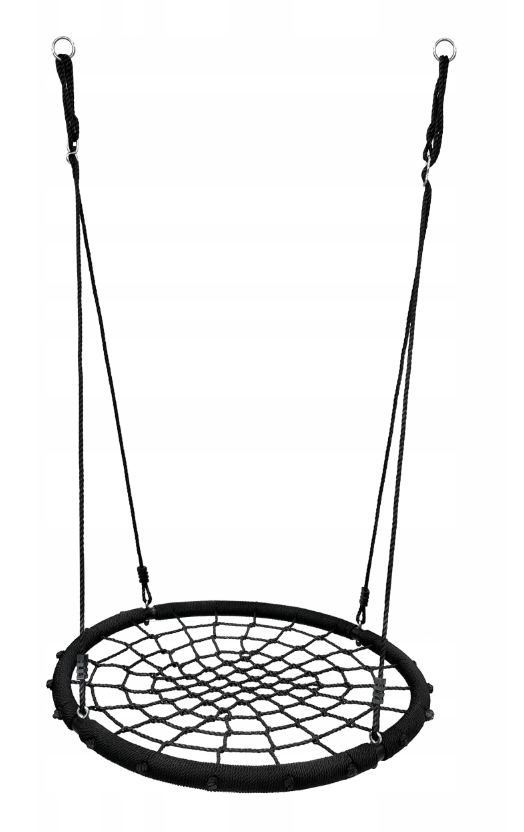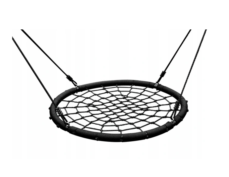 Huśtawka bocianie gniazdo ma atrakcyjne plecione siedzisko z mocnych, wytrzymałych lin. Są one odporne na zniszczenia, rozciągnięcie, zmienne warunki atmosferyczne oraz duże nasłonecznienie. Huśtawka idealnie pasuje do naszych stelaży.