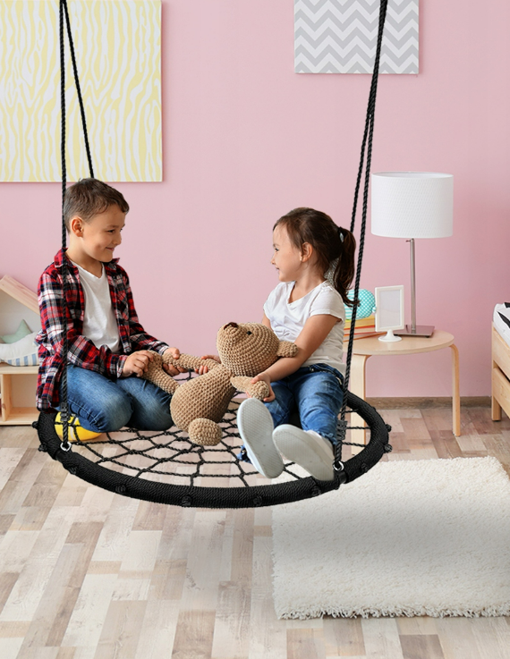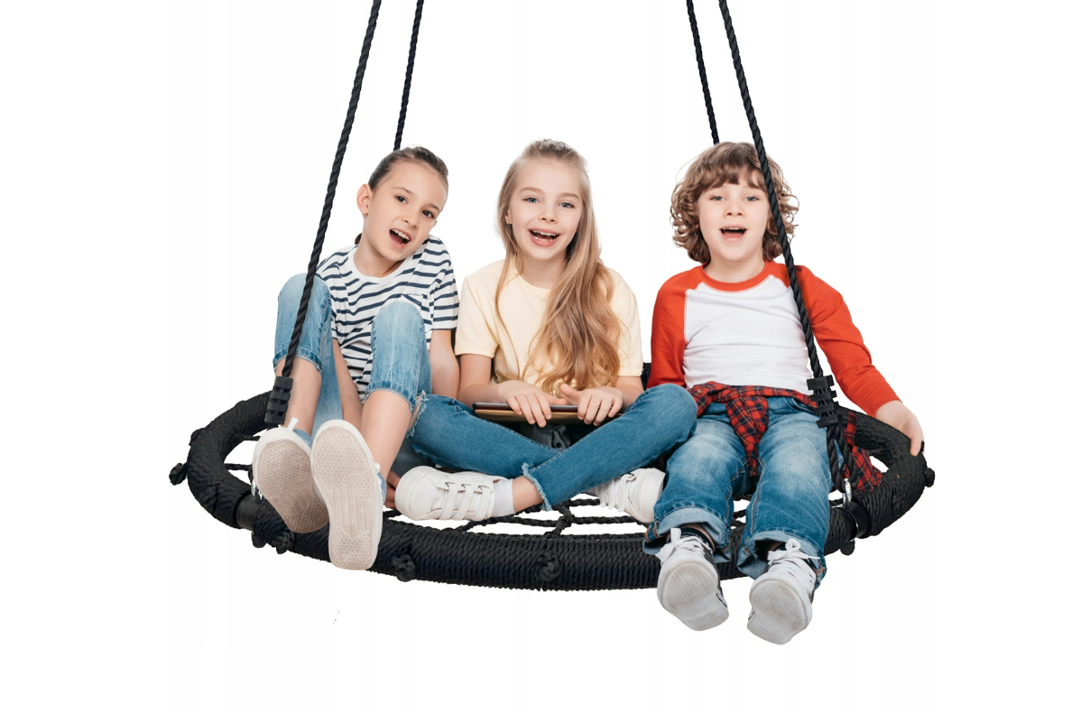 Czy istnieje huśtawka, która zacieśnia więzi? Nasze bocianie gniazdo w wersji XL na pewno! Tu kończą się kłótnie rodzeństwa, o to, kto teraz się huśta, bo wchodzą na siedzisko razem! Tu Twoja córka może zaprosić do zabawy najlepszą przyjaciółkę i tu tata z synem mogą oddać się zabawie wspólnie!