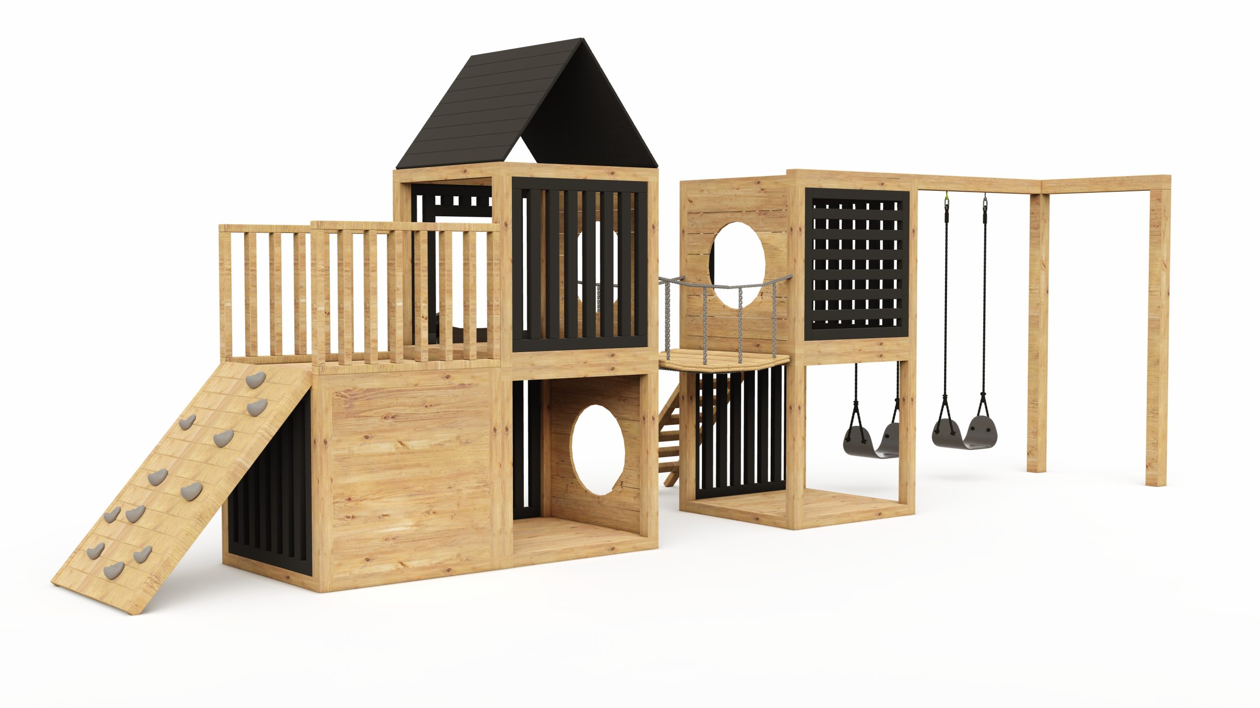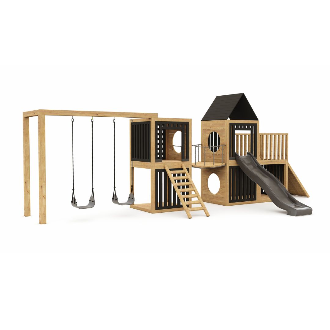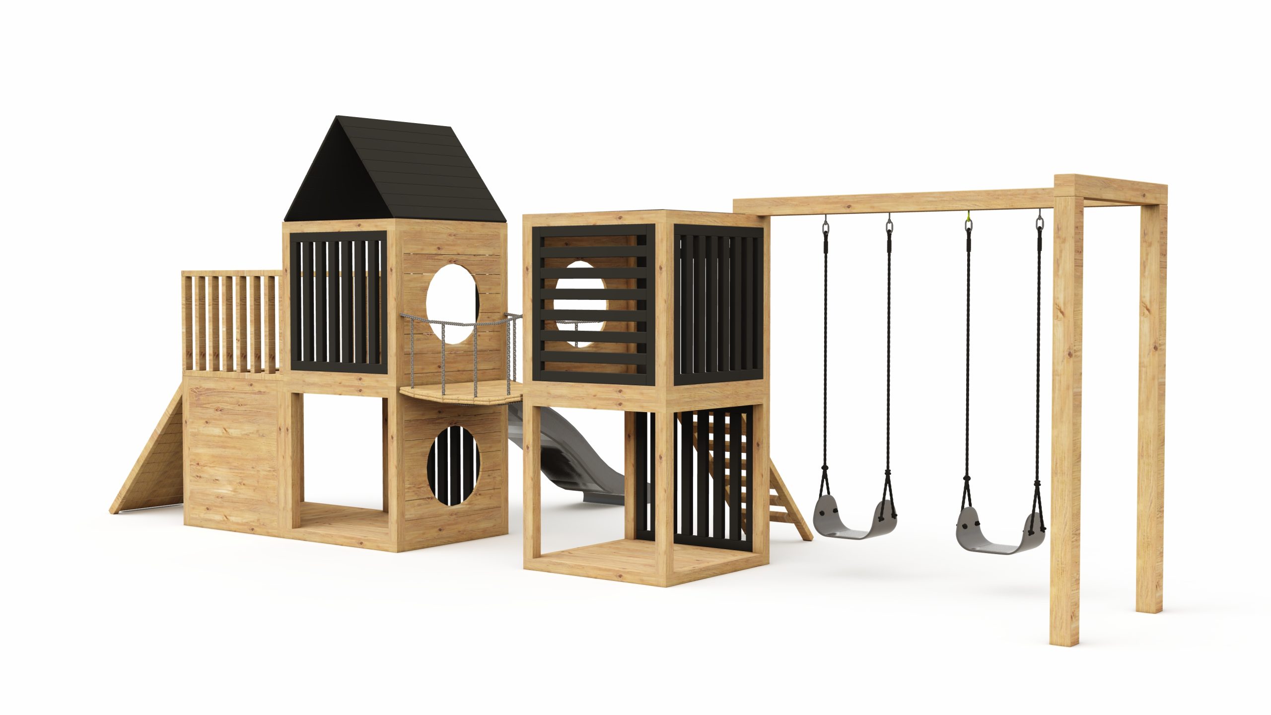 W skład zestawu nie wchodzą huśtawki i ślizg.
