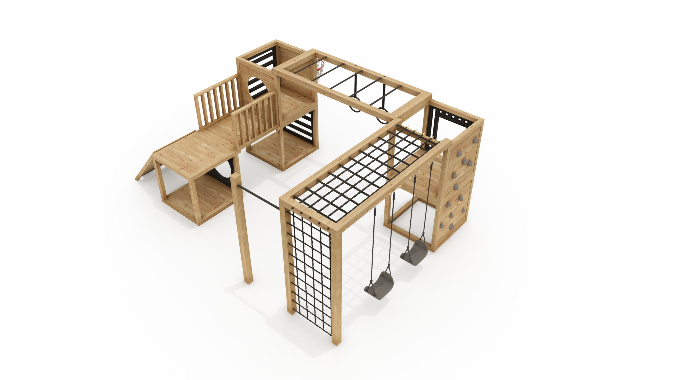 W skład zestawu wchodzą: cała konstrukcja drewniana wraz z akcesoriami.