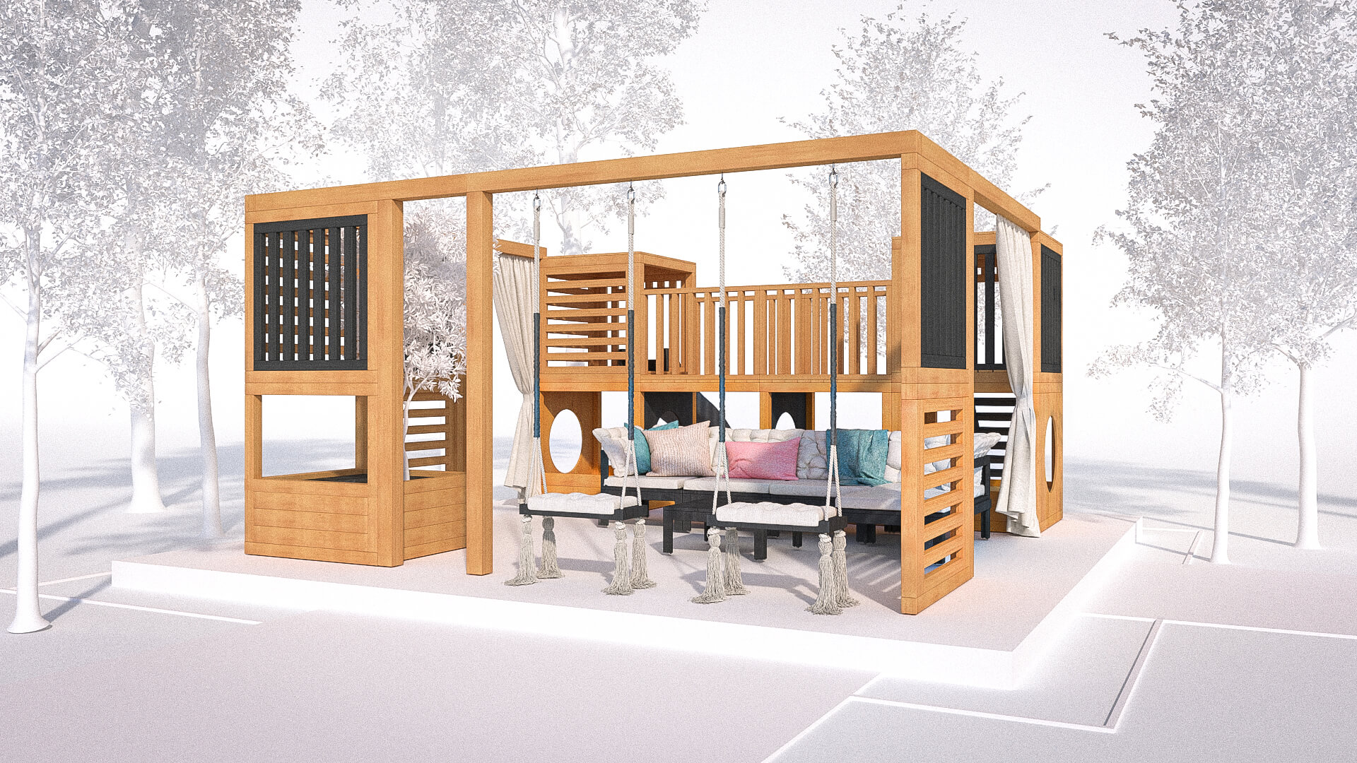 W skład zestawu nie wchodzą: huśtawki, zasłonki, meble, ślizg