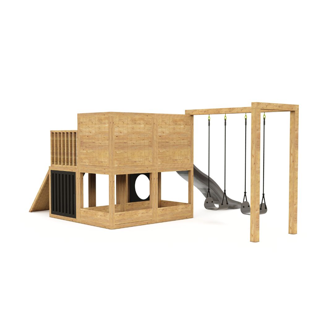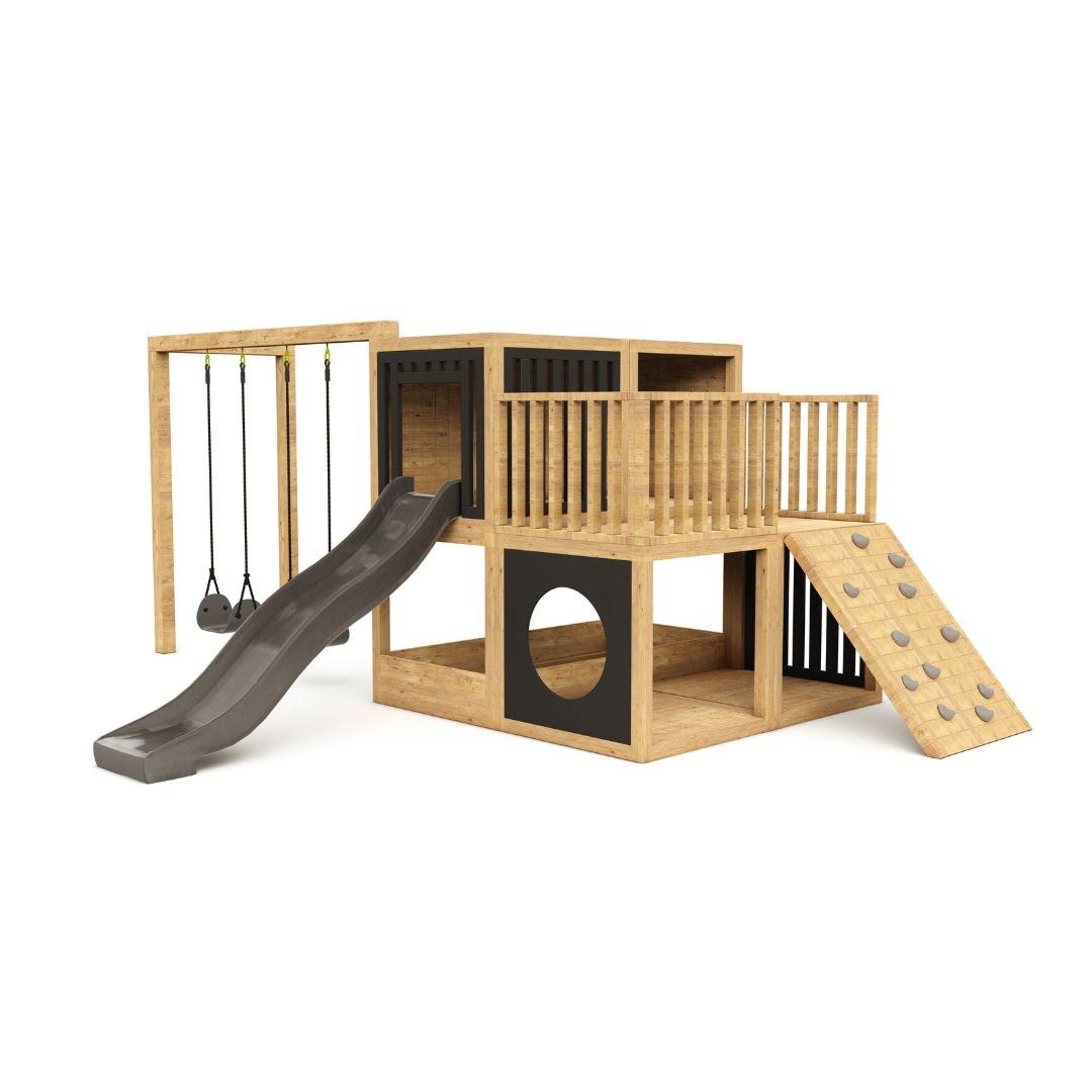 Wymiary zestawu: (bez ścianki wspinaczkowej i ślizg) 4,5 x2m