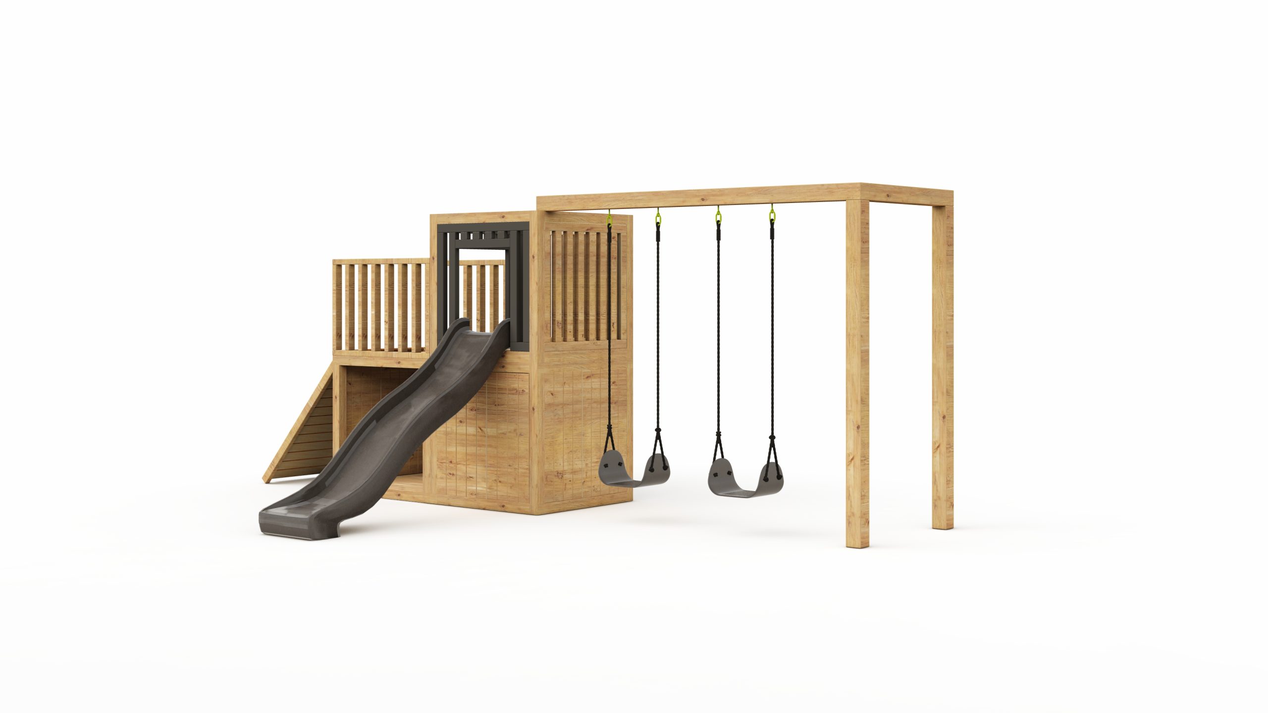 Wymiary: zestawu (bez drabinki i ścianki) 4,5x 1m, kantówki: 7×7 cm, 10x10cm, grubość deski: 2,7 cm
