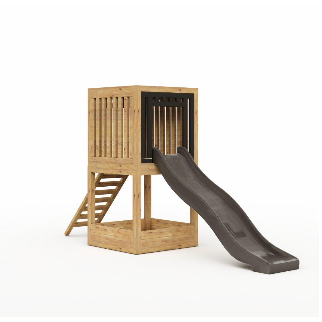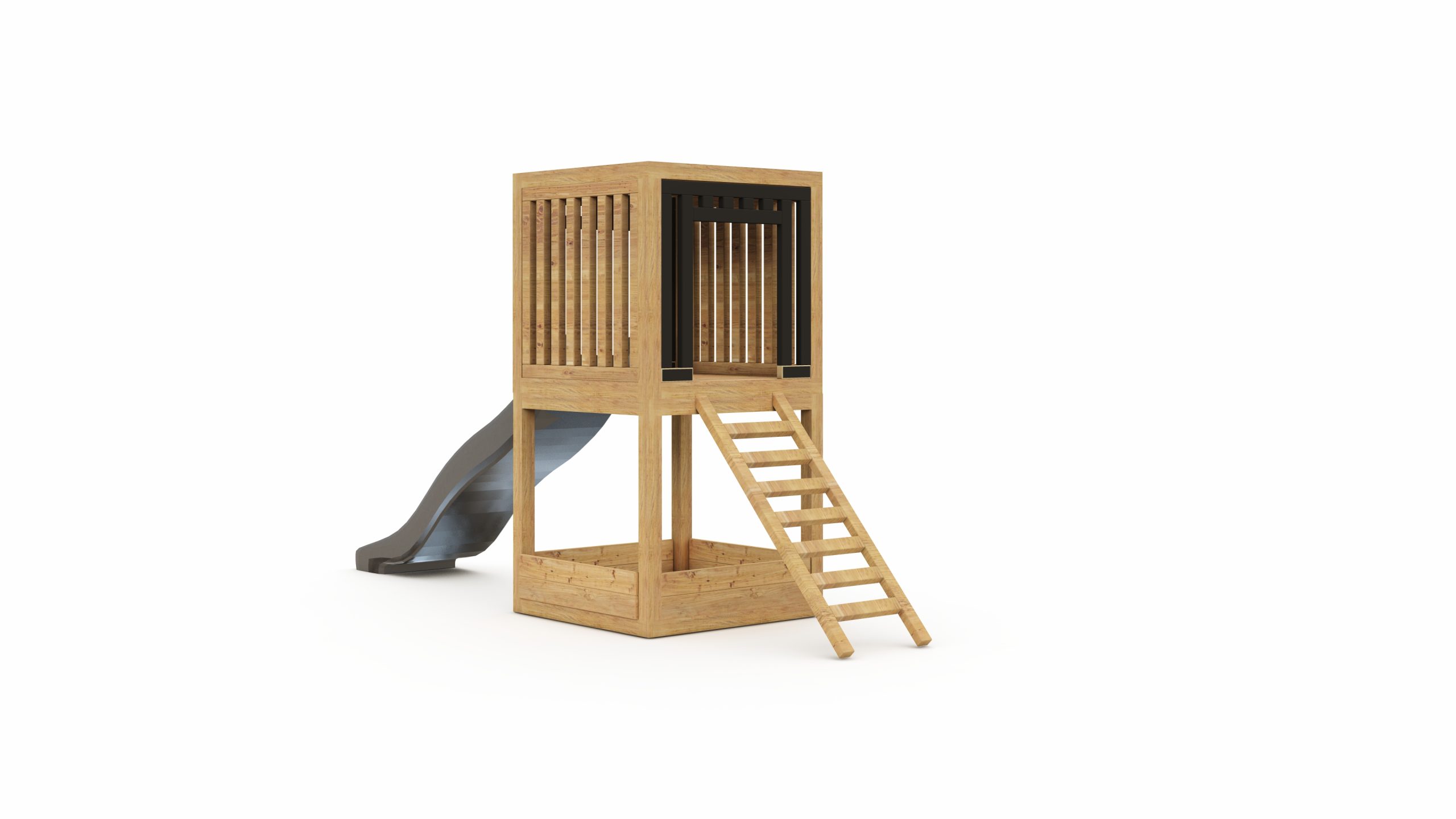Wymiary: zestawu (bez drabinki): 1×1 m, kantówki: 7×7 cm, 10x10cm, grubość deski: 2,7 cm