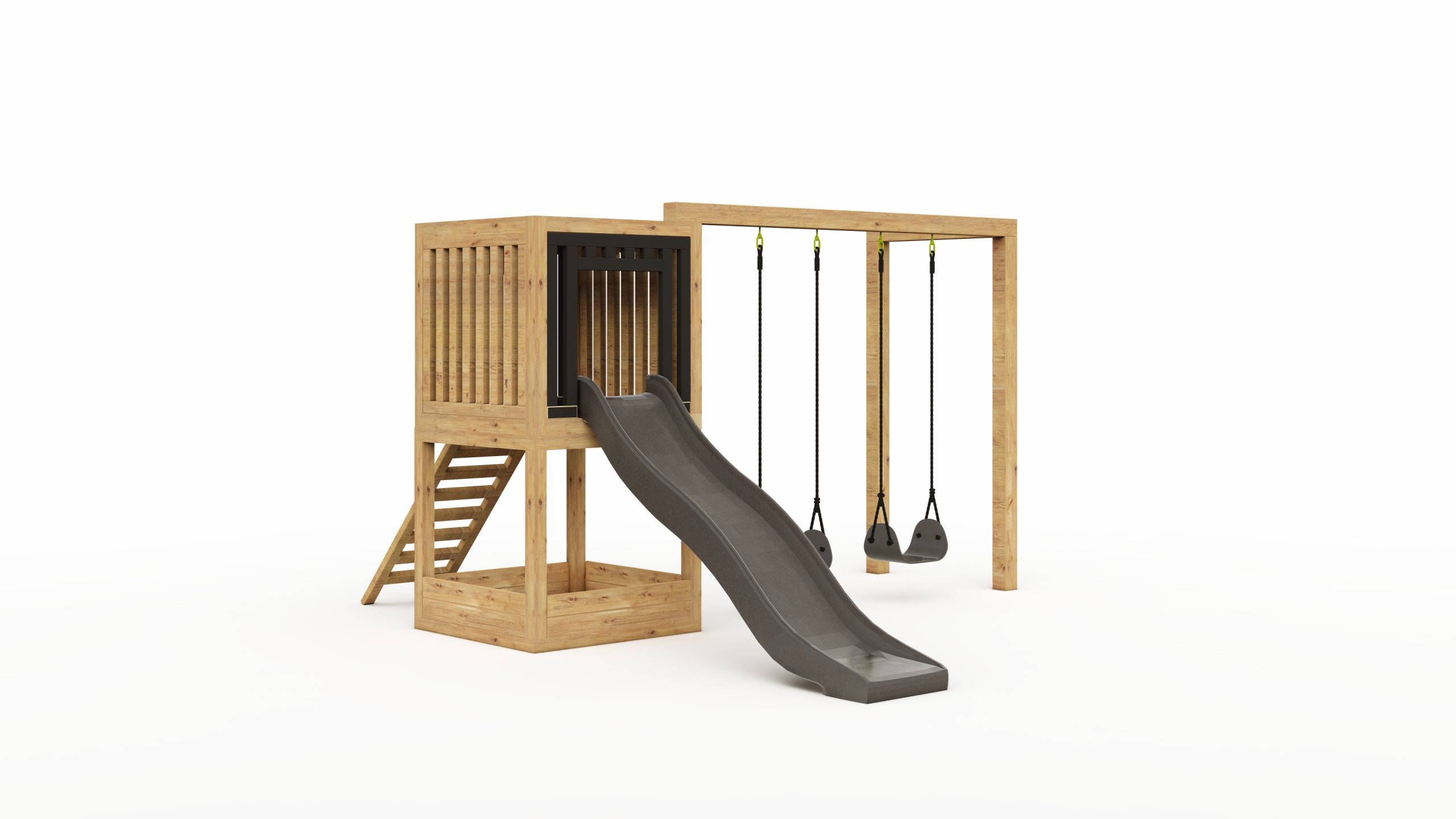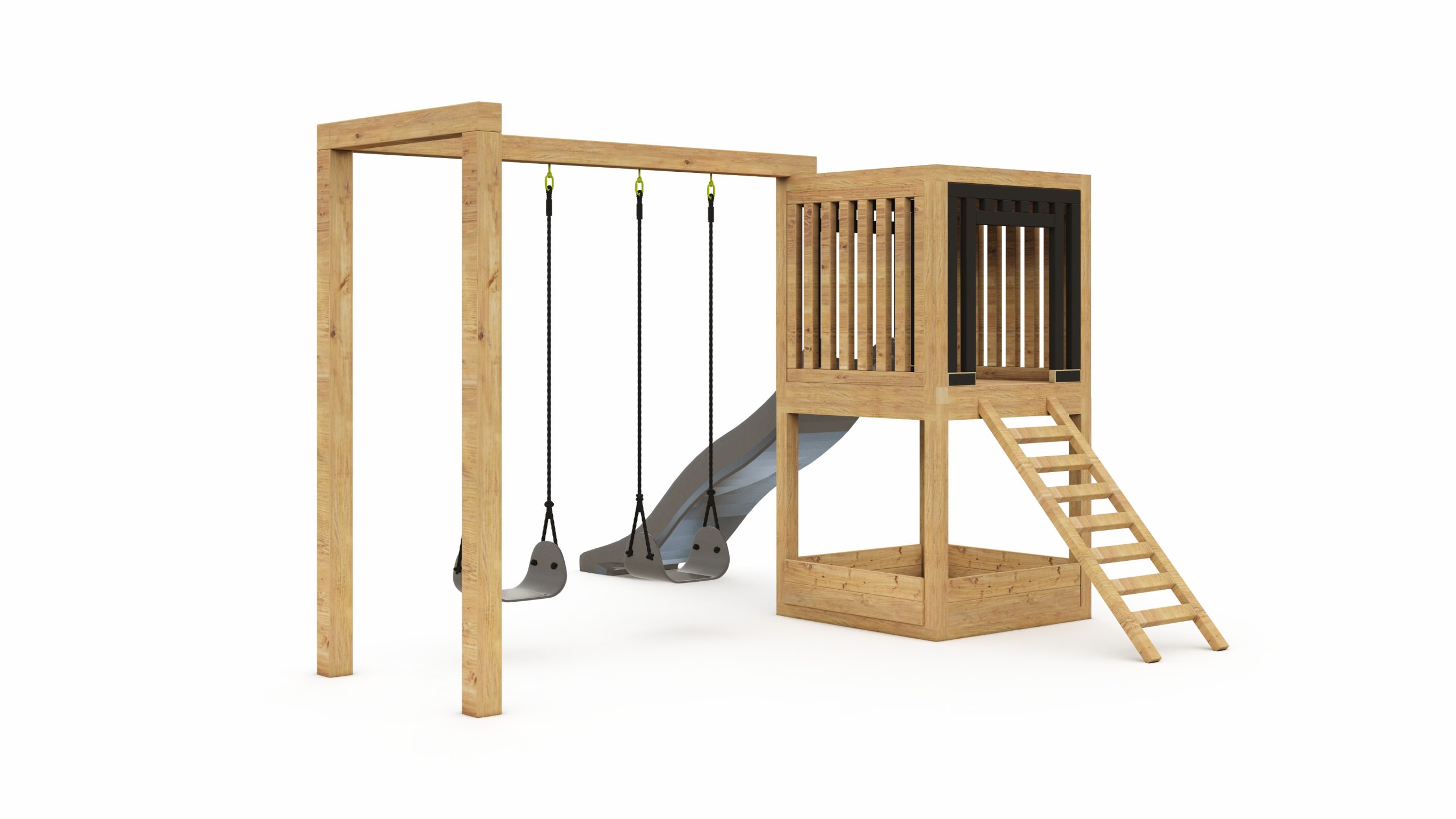 Wymiary: zestawu (bez drabinki): ok 3.5x1m, kantówki: 7×7 cm, 10x10cm, grubość deski: 2,7 cm