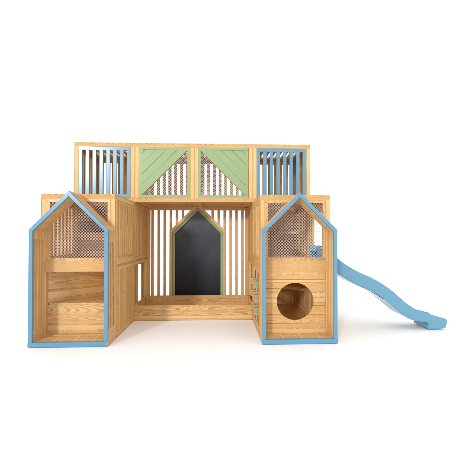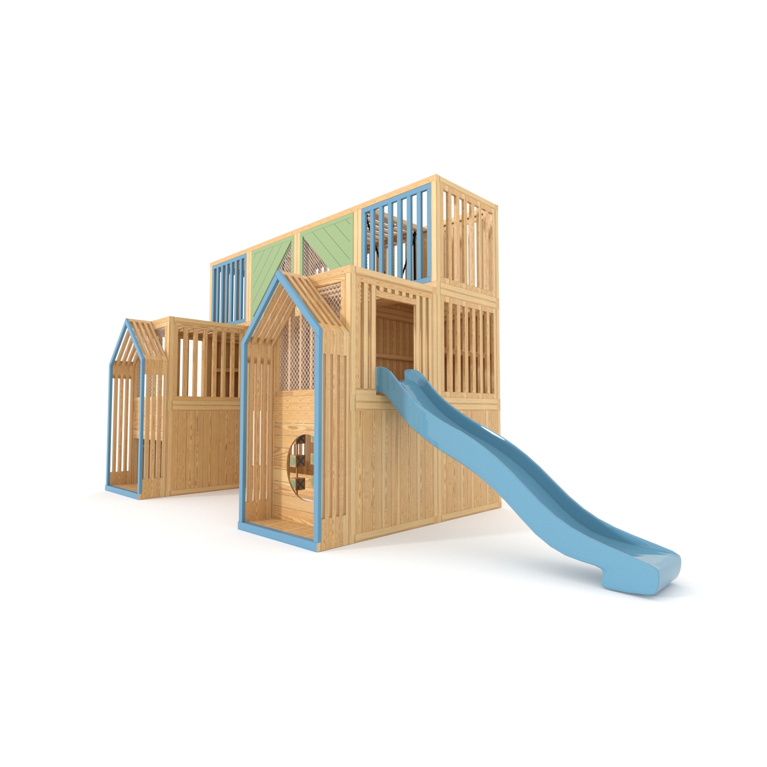 W skład zestawu wchodzi kompletny plac zabaw: konstrukcja drewniana, zjeżdżalnia z laminatu ( kolor do wyboru z oferty) , ścianka wspinaczkowa z kamieniami, liny, beżowe siatki zabezpieczające